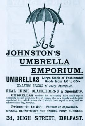 Advertisement for Johnston's Umbrella Emporium, High Street, Belfast (1898).