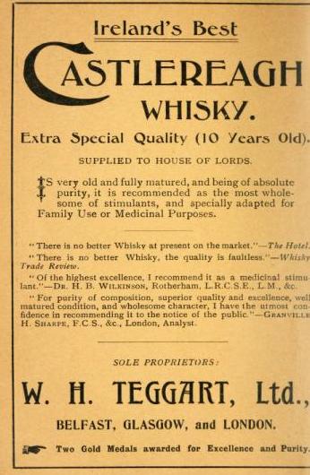 "Ireland's Best'. Advertisement for Castlereagh Whisky, 'Supplied to the House of Lords' (1898)