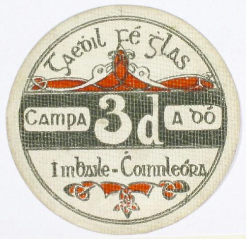 The obverse of the 'O'Loughlin, Murphy and Boland Ltd' advertisment from the 3d token from the Ballykinlar interment camp (c.1920)