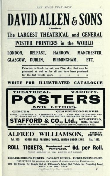 A poster for David Allen and Sons. Makers of theatrical posters. From the Stage Yearbook, 1904.