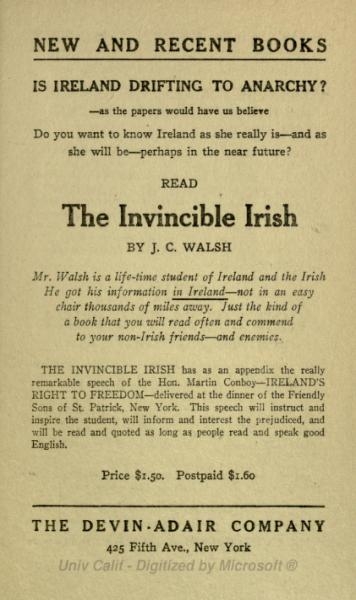 ‘The Invincible irish'. Advertisement for the Devlin-Adair Company of New York (1920).